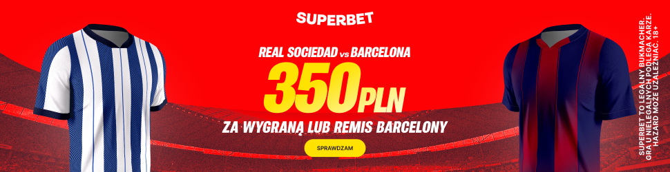 Jeśli ktoś nie ma jeszcze konta w Superbet i nie skorzystał z ostatnich promocji to wciąż ma okazję, aby odebrać nawet 350 złotych bonusu. Po pełnej rejestracji z kodem PEWNIACZKI należy wpłacić depozyt 50 złotych oraz zagrać 2 złote na singla z golem Aston Villi lub zwycięstwo bądź remis Barcelony z Realem Sociedad (oczywiście kupon musi być wygrany).