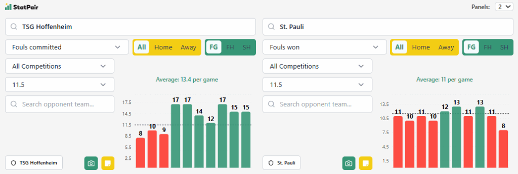 Pierwotnie graliśmy na ten mecz zakład związany z rogami, ale wczorajsza wpadka Lipska dała do myślenia. Wówczas nie było jeszcze linii fauli, a te w tym przypadku wyglądają doskonale. Uważamy, że obie drużyny są w stanie pokryć linię 11,5 i już wyjaśniamy skąd taki pomysł.
