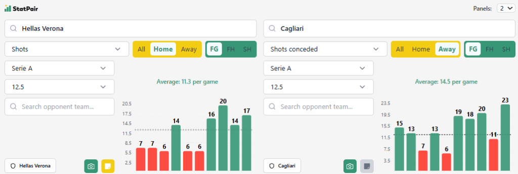 13 – tyle uderzeń musi oddać w tym spotkaniu Verona. Uważamy, że jest to do zrobienia, bo na swoim terenie w tym sezonie ma ona 100% skuteczność oddając 20 strzałów z Cremonese, 14 z Juventusem i 17 z Sassuolo. Poprzednie starcie z Pisą przyniosło 15 prób, a pamiętajmy, że gospodarze musza punktować, żeby oddalić się od strefy spadkowej. Jak na razie jeszcze meczu nie wygrali i fajnie byłoby zrobić to teraz, a bez strzałów się nie uda.