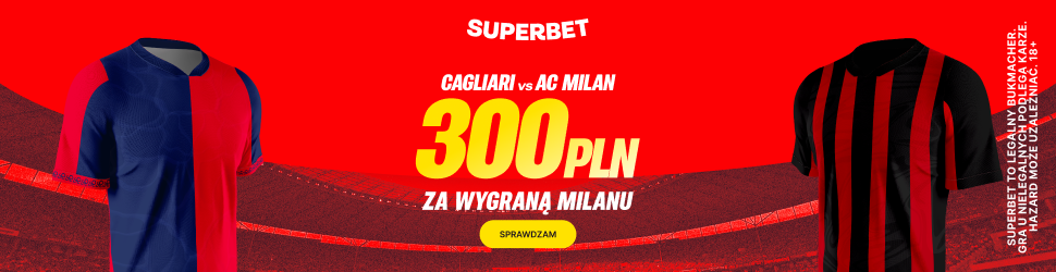 Trzecim meczem w topowych ligach jest starcie Cagliari z Milanem, za które nowi gracze dokonujący pełnej rejestracji w Superbet z kodem PEWNIACZKI mogą odebrać ekstra bonus. Za wygranie pierwszego zakładu na zwycięstwo Milanu w tym spotkaniu na konto wpada dodatkowe 350 złotych na grę.