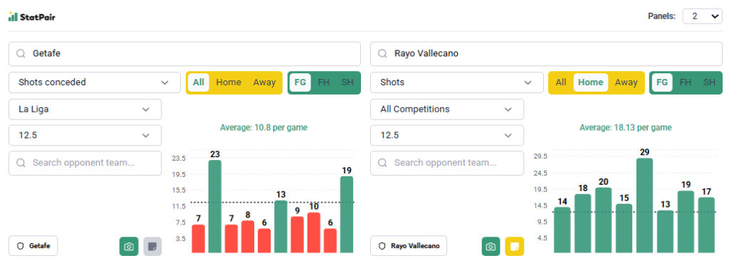 Z Francji wędrujemy do Hiszpanii, gdzie Rayo podejmie Getafe i będzie lekkim faworytem. Liczymy tu na atut własnego boiska, który sprawi, że gospodarze będą stroną przeważającą i będą oddawać sporo strzałów na bramkę rywala, zapewne ustawionego mocno defensywnie. Skąd wiara, że zakład na +12,5 strzałów Rayo to dobry wybór?