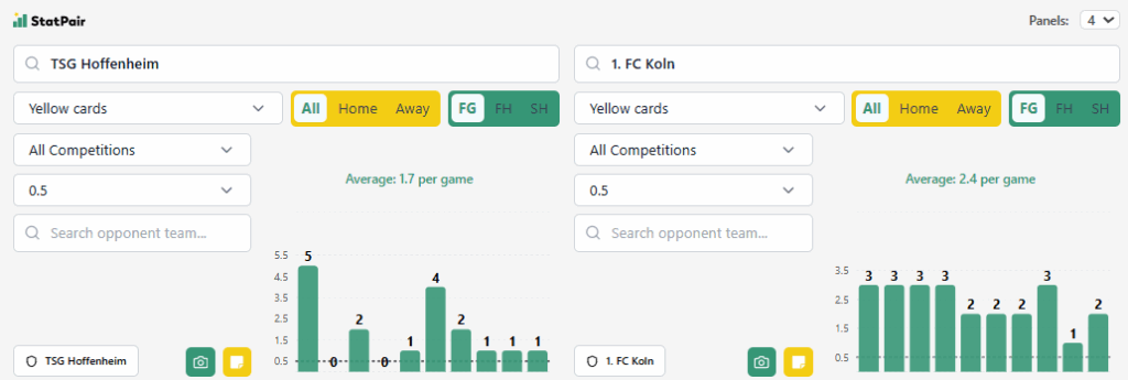 Jak wygląda to pod względem kartek? Hoffenheim założenie to spełniło w 4 z 5 meczów (z Bayerem Leverkusen rywal kartki nie dostał), z kolei Koeln prezentuje 100% skuteczności. No i jeszcze jedna ciekawostka: w poprzednich sezonach odnotowano serię 4 meczów bezpośrednich, w których oba zespoły strzelały gola i łapały kartki.