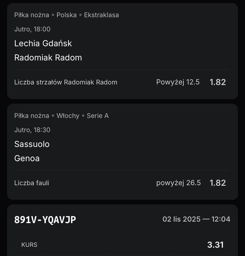 Typy bukmacherskie: poniedziałek 03.11.2025