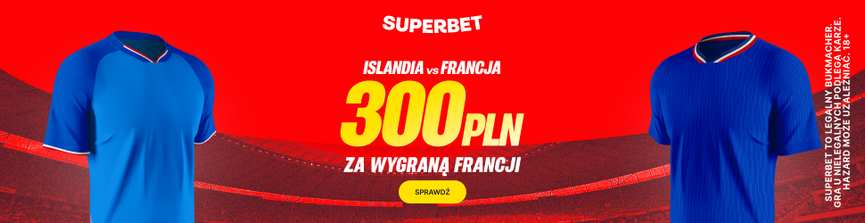 Dziś osoby bez konta w Superbet mają nie jedną, a dwie opcje na zgarnięcie dodatkowego bonusu w wysokości 300 złotych. Należy dokonać pełnej rejestracji z kodem PEWNIACZKI, wpłacić 50 złotych i wygrać pierwszy zakład solo na gola Belgii z Walią lub zwycięstwo Francji z Islandią za „dwójkę”.