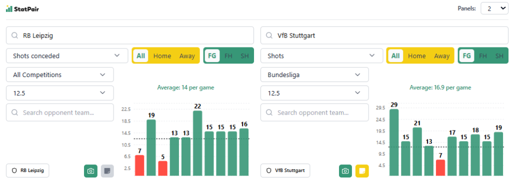 Absolutny hit dnia, bo zagrają ze sobą drugi i trzeci zespół w tabeli Bundesligi. Obie drużyny prezentują świetną formę i wydaje nam się, że żadna ze stron nie będzie chciała tu odpuścić kompletu punktów. Nasza uwagę przykuł zakład na strzały Stuttgartu i analizując dostępne statystyki uznajemy go za bardzo ciekawą okazję.
