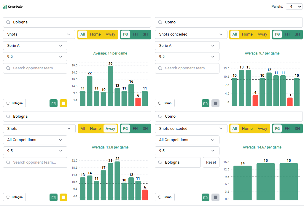 We Włoszech zaczynamy od ciekawego spotkania Como z Bologną. Gospodarze są ostatnio w świetnej formie, goście wręcz przeciwnie i kursy legalnych bukmacherów faworyzujące tych pierwszych nie mogą dziwić. Zagłębiając się jednak w statystyki uznajemy, że linia strzałów Bolonii jest ustawiona zbyt nisko i próbujemy z tego skorzystać.