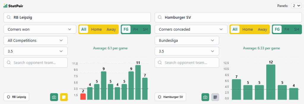 Jak na tym tle wygląda HSV? Beniaminek zaczął słabo, bo od punktu w 3 premierowych meczach, ale później poprawił się i w kolejnych trzech zgarnął już 7 z 9 możliwych. Rywale nie byli jednak nazbyt wymagający i wydaje nam się, że na świetnie grający (zwłaszcza u siebie) Lipsk może być to ciut za mało. W kwestii rzutów rożnych również mamy 100% pokrycia, bo każdy z 6 meczów Hamburga to przynajmniej 4 kornery rywala.