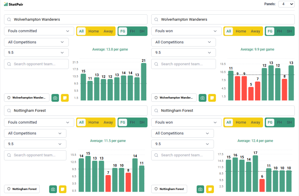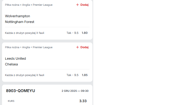 W tym spotkaniu zmierzą się najczęściej faulujący zespół Premier League oraz drużyna, która dość często łamie przepisy i pozwala na to swoim rywalom. Starcie Wolves z Nottingham Forest to pojedynek klubów, których wyniki zdecydowanie odbiegają od oczekiwań, a taka frustracja często prowadzi do fauli. Liczymy, że jedni i drudzy będą uciekać się do takiego rozwiązania.