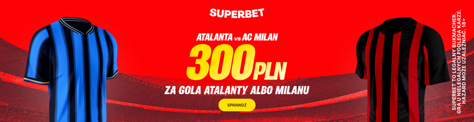 Spotkanie w Bergamo jest też szansą dla nowych graczy Superbet na odebranie dodatkowego bonusu 300 złotych. Należy dokonać pełnej rejestracji z kodem PEWNIACZKI, wpłacić pierwsze 50 złotych, a następnie zagrać zakład na gola wybranej drużyny w tym spotkaniu.