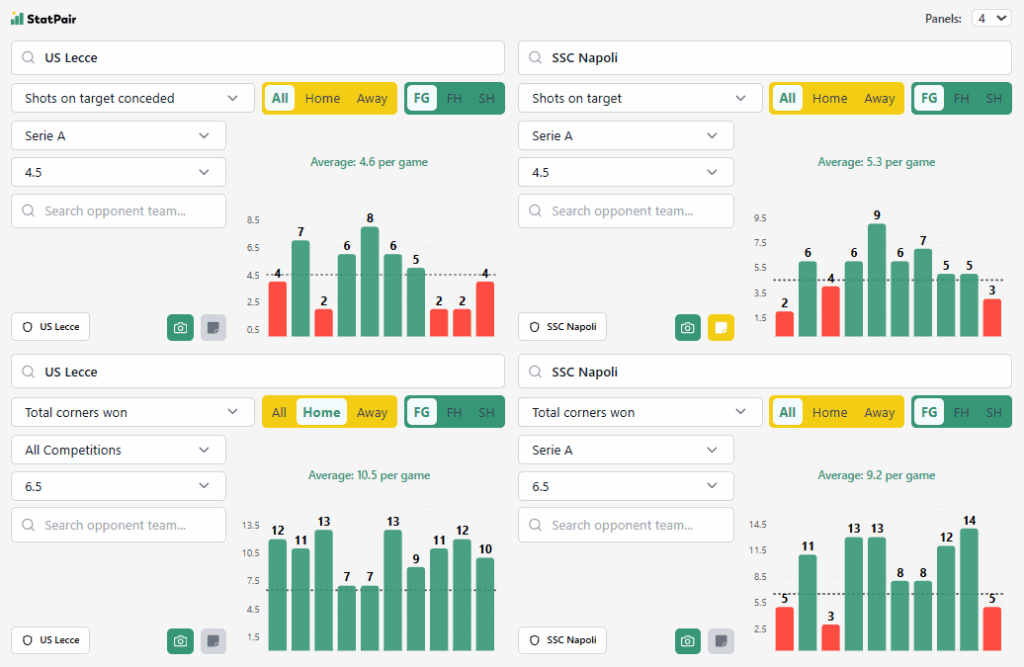 - Nasz typ: +6,5 rzutów rożnych & Napoli +4,5 celnych strzałów