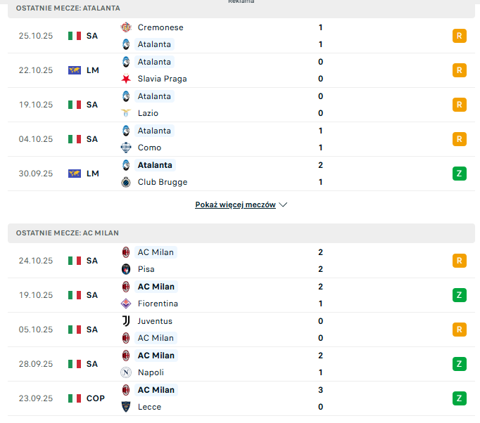 Zaczynając od bramek: tutaj żadna ze stron zapewne nie rzuci się do ataku, a czeka nas raczej wyczekiwanie na to co zrobi rywal. W historii tej rywalizacji wysokich wyników nie mieliśmy, bo na 10 spotkań over 3,5 wyskoczył tylko dwukrotnie, podobnie mamy zresztą w tym sezonie. Atalanta w Serie A poza linię wyszła tylko raz na 8 kolejek, w Lidze Mistrzów podobnie, bo w 1 z 3 meczów (0:4 z PSG). Milan wygląda tu dokładnie tak samo – 7 razy poniżej 3,5 bramek i tylko raz, ostatnio 2:2 z Pisą. Jeśli ma być wzajemnie wyczekiwanie to under wygląda rozsądnie.
