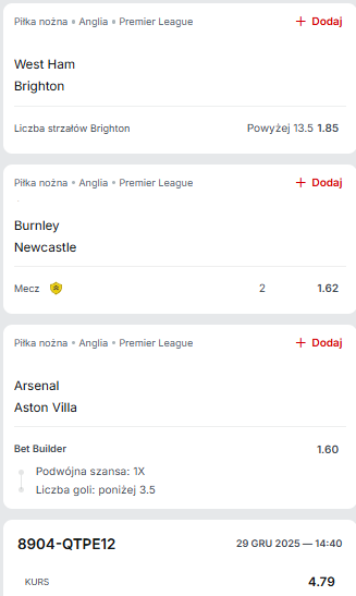 Aston Villa wygrała aż 11 meczów z rzędu, w tym również z Arsenalem na swoim terenie. Czy powtórzy to w Londynie? Naszym zdaniem ta fenomenalna seria zakończy się 30 grudnia, bo „Kanonierzy” nie pozwolą sobie na domową porażkę. Według nas zespół Mikela Artety nie przegra, a spotkanie przyniesie maksymalnie 3 gole.